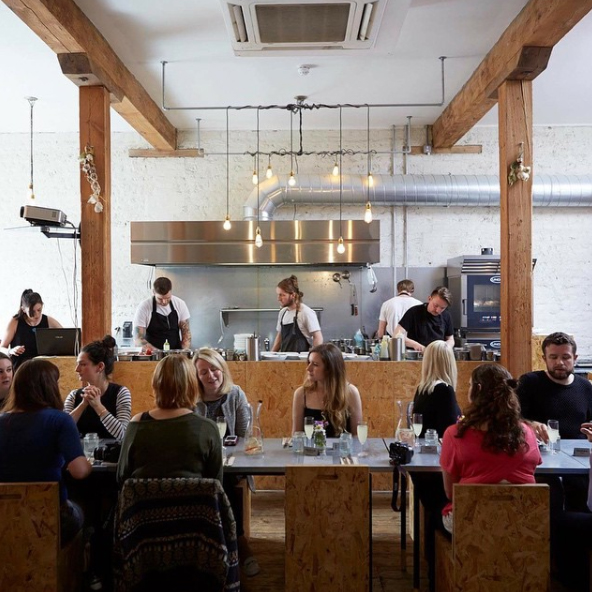 The space is minimalist but warm. With clear light bulbs hanging down on black wires, plastic crates and reworked wooden furniture, you can see their ethos seeped into every detail. The clientele are a mix of families, friends doing lunch and people sipping on coffee whilst working behind their laptops.