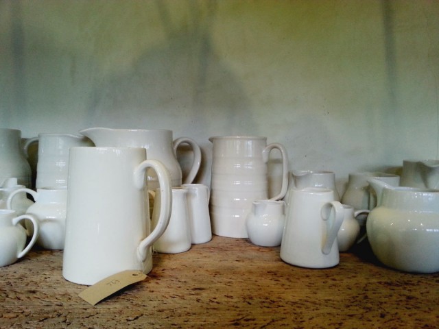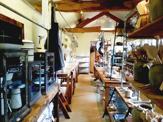 Inside, we split up. Dan took the boys round, leaving me time to browse in peace. The barn is divided into a series of rooms, each set out as rooms in a home. I lost a good half an hour in the kitchen section; white ceramic jugs, vintage glass jelly moulds, silver cutlery and wooden spoons galore.