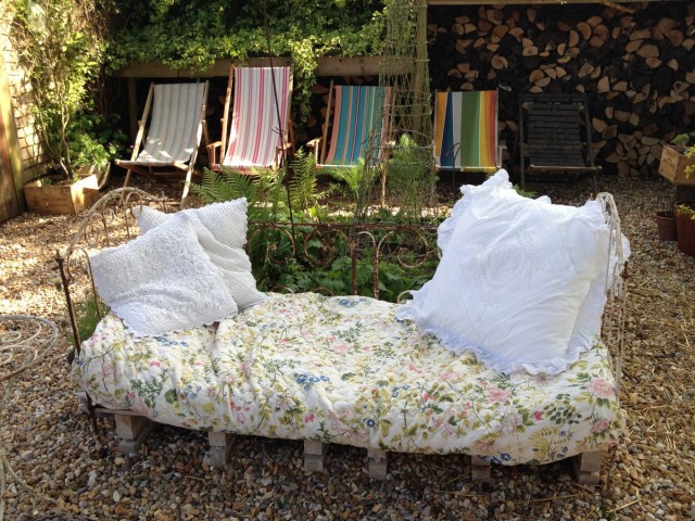 If it’s a sunny day, be sure to make the most of the quirky and enchanting garden with its vintage iron day beds strewn with cushions, straw bale seating, striped deckchairs and romantic summerhouse.